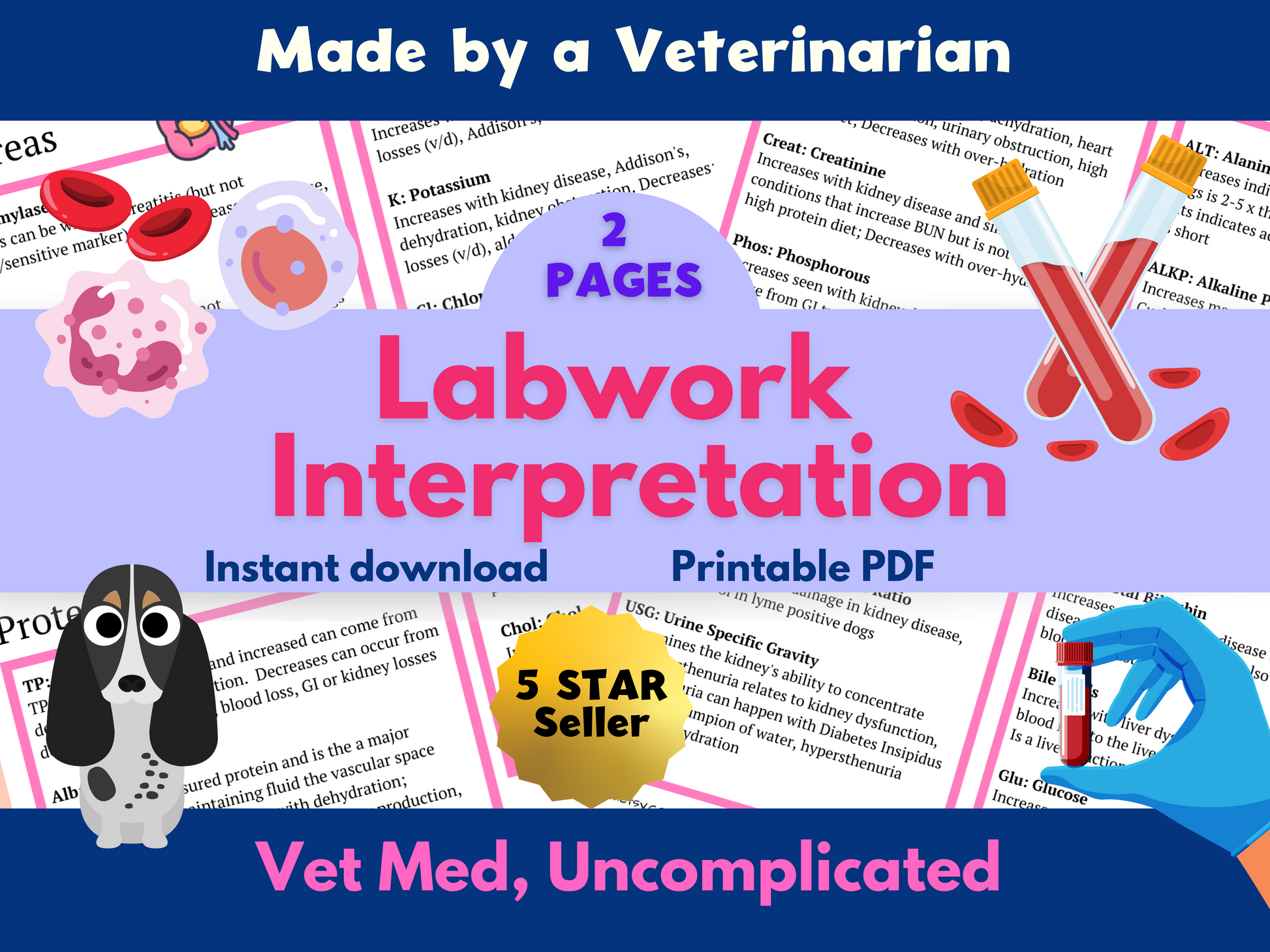 A handy printable Lab Values Guide for vet students, vet nurses/ vet professionals / 2 PDF printable