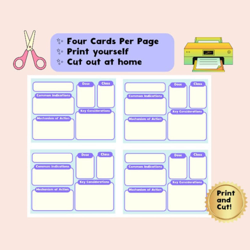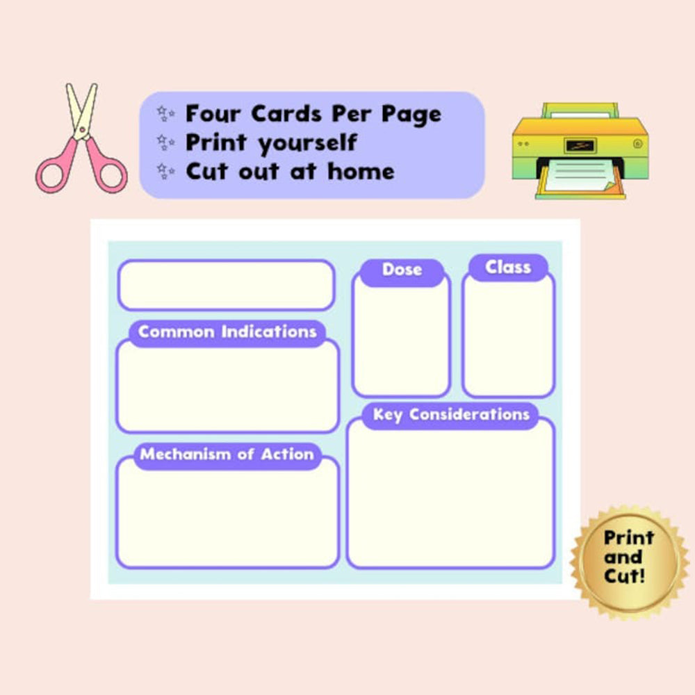 These fillable pharmacology flashcards help solidify and test your knowledge of important veterinary medications. Writing in the details helps you remember the facts and then you can test yourself over and over!
