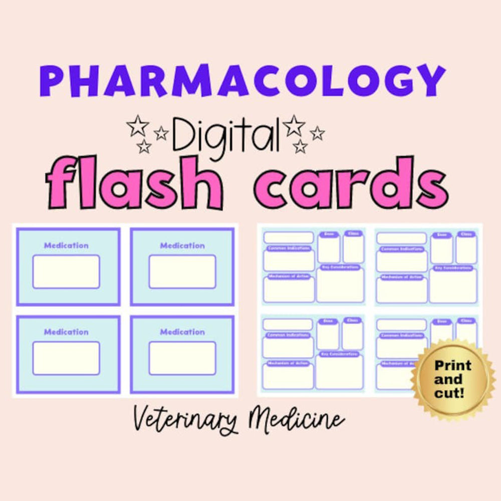 DIGITAL VETERINARY PHARMACOLOGY FLASHCARDS - NO PHYSICAL PRODUCTS WILL BE SHIPPED