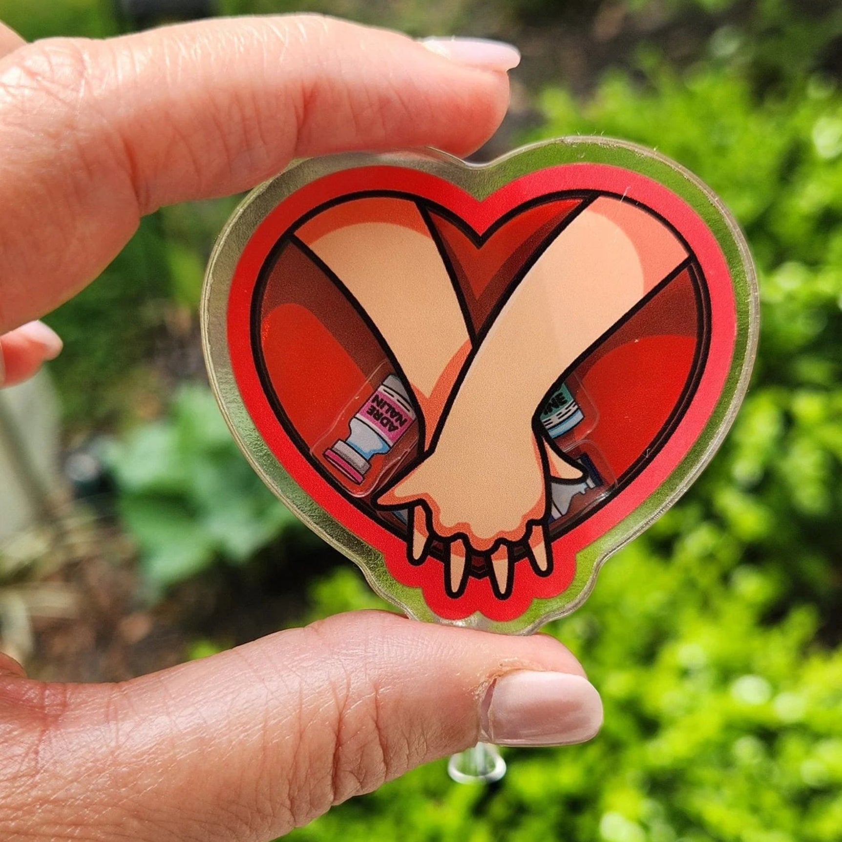 This is a perfect gift for any nurse or doctor. It represents life saving CPCR and features 4 life saving vials of medicine that move inside the badge: adrenalin, atropine, lidocaine and naloxone.