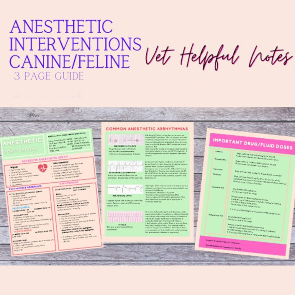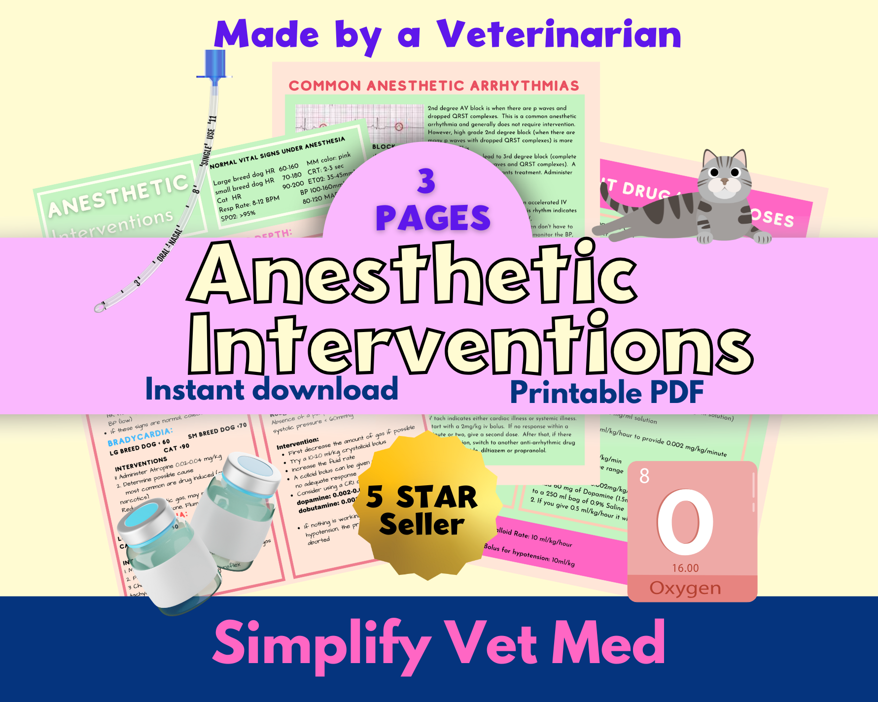 A Printable Guide about Anesthetic Complications and their Treatment: for vet students, vet nurses/ vet professionals / 3 PDF printable